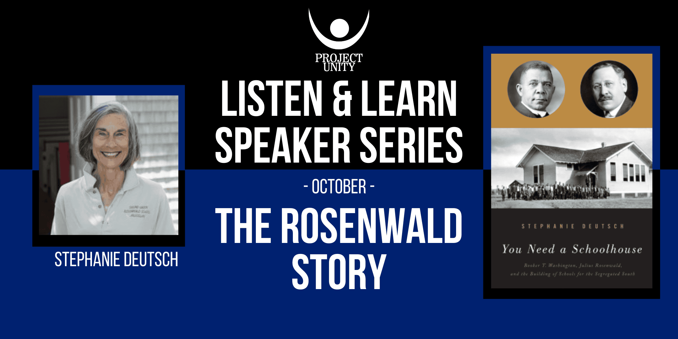 This October, Project Unity’s Listen & Learn series highlighted the inspiring story of Julius Rosenwald—a Jewish businessman, philanthropist, and president of Sears Roebuck—who partnered with Booker T. Washington to build nearly 5,000 schools for Black children across the segregated South.